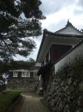 | 平戸城 2015年9月12日 | 75城目 予定変更で平戸城に足を延ばすことに。 名護屋城から一般道で2時間弱。幹線から一方通行路に入りしばらく進み、山麓の駐車場に駐車。階段を少し登れば、現存の北虎口門と狸櫓に到着。ここでチケット(510円)を購入し、入城。 さらに登った本丸の模擬天守受付にスタンプはあります。 天守は模擬で、再建櫓も怪しげ、現存建物にも変な改修(何たってガラス窓)ということで、正直、かなり微妙な印象が拭えない城です。 そんな中、模擬天守最上階からの眺めは絶景です。 再建櫓の屋根越しに広がる玄界灘、そして山上からでも流れの速さが見て取れる平戸瀬戸。こんな景色の城は他にないのでは。これだけ(?)でも、100名城に値すると思いました。 |