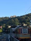 | 高知城 2015年10月19日 | 87城目 四国3日目は高知泊まり。今治から、高速利用で四国を南北に縦断(2時間強)。チェックイン前に、まずはお城へ(駐車場は山内一豊像そば)。 登城は現存の追手門から。追手門越しに見える山上の現存天守は、いちばん高知城らしい風景です(但し、午後は逆光)。 石樋・長宋我部時代の石垣・天守下の忍び返し・詰門などを見ながら、杉の段⇒三の丸⇒二の丸と進み、本丸へ。詰門2階を通り抜けてから、多聞櫓の間の廊下門をくぐるなど、動線も凝っています。 本丸は比較的こじんまりしているものの、天守・御殿など多くの建物が現存し、見所沢山。天守を含む建物には御殿玄関(スタンプはここの窓口)から入ります。建物内から土塀に空いた長方形の穴を通して城外が見える物見窓(現存はここだけ)など、細部にも興味深い点が。漆喰が予想外に黒ずんでいるところに、かえって歴史を感じました。 本丸からの帰路は黒金門経由で。 夕食は、鰹のたたきと鯨。 翌朝は、6時半頃にはりまや橋近くのホテルを出て、日の出直後の高知城へ散歩。天守の白壁が朝日に映え、オレンジ色に染まっていました。 |