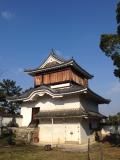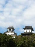 | 今治城 2015年10月19日 | 86城目 四国3日目。松山城近くのホテルを8時半頃出発。途中、道後温泉そばの伊佐爾波神社・石手寺に参拝してから、山越えの一般道を今治へ。10時過ぎに到着し、お堀端の駐車場に駐車。 鉄御門から入城し、天守・櫓の内部を見学(100名城スタンプは天守入り口。それとは別に、天守と各櫓に置いてあるスタンプを集めると、2種ある絵葉書から1枚を貰えます。)。 今ある建物は全て新しいもので、天守に至っては、丹波亀山城天守の古写真を参考にした模擬天守。とはいえ、最上階からの眺めは素晴らしく、瀬戸内海・しまなみ海道を一望。足元には、藤堂高虎の縄張りを特徴づけるシンプルな方形の曲輪(本丸・二の丸)が広がっています。 本丸跡の吹揚神社に参拝した後、山里門から出て、内堀沿いを歩きました。直線的な石垣、石垣下の犬走り、海水を取りいれた広大な水堀といった今治城の特徴がよく分かります。 全くの平地に築き上げたということで、当時の土木力に感心。堀に海水魚(ボラ?)はいましたが、話題のサメは発見できませんでした!(尤も、いつでもいたらビックリですが。鉄御門の係の人によると、5月と9月に海から侵入したそうです。) |