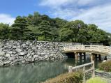 | 高松城 2022年9月17日 | 87城目 台風14号接近のため、予定を1日繰り上げて高松城を訪問しました。午後3時15分玉藻公園の駐車場(無料)に愛車を停め、東門受付で名城スタンプを押し、桜御門から月見櫓を見て、鉄門近くで、ちょうど城舟体験最終15:30のタイミングだったので、申し込む(一人500円鯛のエサやり付き)とすぐに城舟できました。船頭さんの解説がとても分かりやすく、鯛にエサをやりながら、とても楽しい時間を過ごしました。天守台の石垣は一度解体してきれいに磨いてから再度元通りに積み上げたそうで、石垣の色は往時を彷彿させます。夜はオリーブ牛と地酒の玉藻をいただき結構酔っ払いました。 |