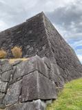 | 弘前城 2025年10月19日 | 99城目 前日十和田湖温泉に宿泊し、車で2時間ほどで津軽藩ねぷた村に到着。弘前城には北門(亀甲門)から入城しました。広々とした四の丸の広場を抜けて、東口券売所で入場料320円を支払って本丸に入りました。当初は石垣改修後に天守が元の場所に戻ってから登城しようと思っておりましたが、新型コロナなどで工期が延びたため、待ちきれませんでした。天守内でスタンプをゲットし、急な階段を上って最上階に登ると岩木山もはっきりと見えて絶景でした。古の武将も同じ晩秋の岩木山を見たことでしょう。園内には古木・名木も多く、歴史を感じます。天守が元に戻った後、桜の季節にもう一度訪ねたい処です。 |