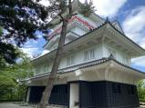 | 山形城 2024年5月17日 | 94城目 秋田からレンタカーで途中酒田の山居倉庫で昼食し、午後山形市内に到着。ホテルからまずは最上義光歴史資料館に寄り、ここでスタンプをゲット。東大手門より登城しました。2023年7月放送のブラタモリ山形編を2.3度見て予習していましたが、山形城は全国でも5番目の規模を誇る城郭ということで本丸の広さを実感しながら散策しました。正面からは顔の見えない最上義光像やお堀の横を走る山形新幹線、旧済生館本館など見所は多いと思います。また、霞城セントラルの24階展望室からお城を俯瞰できます。夜は山形牛、芋煮、玉こんにゃくを山形の地酒でいただきました。 |