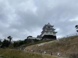 | 丸亀城 2022年9月17日 | 86城目 高知のホテルを7時55分に出発。中津万象園に寄って、10時45分に丸亀市立資料館の駐車場に到着。まずは大手一の門に回って日本一の石垣にそびえたつ天守閣を仰いでから登城しました。あの高い天守までどう登るのかと思っていたら、勾配のきつい坂を一気に登るのでそれなりの体力が必要です。ここでも汗だくになって天守閣に到着し、名城スタンプを押しましたが、見晴らしは最高です。讃岐富士や瀬戸内海が見渡せ、殿様になった気分です。下りも注意して下りないと転んだらたいへんですよ。昼は讃岐うどんを食べて、栗林公園、高松城に向かいました。 |
