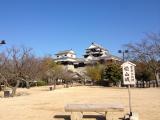 | 松山城 2014年3月21日 | 52城目今治から国道317号線で1時間ちょっとで松山市内へ。本日宿泊するホテルに車を停め、10分ほど歩き、坂の上の雲のメインテーマを口ずさみながらリフトで松山城に登城しました。マドンナ姿のガイドの方に天守群をバックに夫婦のツーショットを撮ってもらい、天守入口受付でスタンプを押していよいよ天守へ。天守、小天守、隅櫓と実に見ごたえある建物群です。石垣も複雑にかつ美しく入り組んでいて実にすばらしい。天守や本丸からの展望も素晴らしくしばし浮世を離れた感がありました。帰りはロープウェイに乗って下山。市内電車に乗り、大街道や銀天街の繁華街をぶらぶらして、焼野菜のおいしい店で夕食を摂りました。翌朝も8時にホテルを出てウォーキングで登城。地元の方に松山城の幕末の歴史を教えていただきました。こんな素晴らしいお城のある街に住んでいると、歴史に詳しくなるでしょうね。ありがとうございました。 |