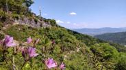 | 安土城 2022年5月2日 | 本丸の焼けた石垣とツツジ。石はほとんどデイサイトっぽい? |