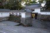| 徳島城 2014年1月13日 | 71城目 散策するには、スタンプのある博物館で、カラーリーフレット「徳島城中央公園」もしくは、「徳島城博物館周辺マップ」を入手すると便利です。 西側虎口にある弓櫓跡の石垣は、当初は天守があったらしいだけあって迫力があります。 もともとの天守を破却し、あえて、東二ノ丸の天守台も無い「御三階櫓」に代えたのは、いったいなぜなのでしょうね・・・。 表御門庭園も必見です。博物館に入場(300円)するか、庭園だけなら50円の入園料が要りますが、それでも、眺めるだけでなく、枯山水の中を散策もでき、自然石の橋(10.5m!)も実際に渡ることができるなら太っ腹だと思います。 |
