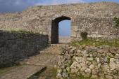 | 中城城 2014年3月21日 | 77城目 沖縄100名城めぐり、1/3城目。 飛行機の到着が遅れたのと、混雑でレンタカーの手続きに時間を要し、中城城に着いたのは16時30分。 事前調べで17時00までとは知っていたのですが、チケットを買う際に「17時30分までには出て下さいね」とのお言葉をいただき60分の持ち時間に。 これまでの名城見学時間(1城あたり最低半日)を考えると断腸の思いでしたが、カラーリーフレット「世界遺産 中城城跡」を片手に急いで、「裏門」〜「各郭」〜「正門」〜「ガンジャーガマ」まで。 閉門間際で人がいなかったこともあり、南郭(霊域)には、本州には無い、厳かな雰囲気が漂っていました。水木しげる先生の「ゲゲゲの鬼太郎」などに出てくる南方の島の神域のような感じでしたね・・・ |