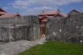 | 今帰仁城 2014年3月22日 | 78城目 沖縄100名城めぐり、2/3城目。 駐車場近くの今帰仁グスク交流センターの券売所にて、チケットのほか、 カラーリーフレット「世界遺産 今帰仁城跡」と「今帰仁村文化財ガイドブックvol.1(500円)」を入手してから、城内に向かいます。 やはり、本州では見かけない、屏風が波打つように湾曲した石垣には、目が引かれますね。 要所は高石垣にもなっており、「百曲がりの城壁」や「志慶真門郭」から見上げるそれは、素晴らしいものがありました。 「平郎門」を潜って、すぐ左側の「大隅」の郭内も見学できるようです。リーフ記載の洞窟(抜け道)跡には、それの解説看板もありました。 |