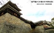| 今治城 2014年3月11日 | 今治城を訪れてまず気が付く事は、水堀が幅約60mにも 及ぶ広大な堀であることです。当時の鉄砲の装甲貫通 距離50mを意識して、まず水堀を隔てた戦いを想定して いるのです。 また堀の水のきれいさです。これは、現在も内堀に瀬戸内の 海水が流れこんでおり、水が出入りするので全国の城の中 でも水質の良い堀のトップクラスとの事でした。 平成19年に復元された鉄(くろがね)御門もなかなか見応えが あります。写真撮影をしていると、門の近くで通路に旗指物を 指しておられた方から、「どちらからですか」と声を掛けられました。 会話を交わしていると、当初の再建計画では、費用は6億円の予定 でしたが、幕末期の写真、発掘調査結果を基礎資料とし、そして 広島大学教授の指導などを受けて可能限り忠実な再建を行った。 結果、費用は10億円となったとの事でした。 きっと多数の市民の寄付を得て再建されたと思います。今治市民の 再建に掛ける心意気が感じられました。結果、大手側からの景観は 往年の威容を取戻し、これで城の風格がぐっと備わったのです |