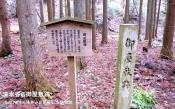 | 郡山城 2014年6月18日 | 58城目 登城は時間の関係で、毛利家の墓所迄です。 本丸へ通じる西の山道の洞春寺跡に元就と一族の墓が ありました。 元就墓所は一段と高い場所にあり、墓標として植えられた ハリイブキは枯れてしまっており、隣の樫の木に固定されて 立っていました。 また、墓所の近くには、日本百名城NO.72のスタンプの デザインにもなっている「百万一心」の石碑がありました。 現地ガイドの方の説明によれば、 「郡山城の改修の際、元就は人命を尊び、人柱に代えてこの 文字を刻んだ石を石垣に埋めると工事がうまくいったと伝えられる。 幕末に長州藩士が山で見つけ、拓本もとったが、石そのものは 所在不明のまま。 碑は、昭和6年に拓本を摸刻して建立された。 碑の文字は、「一日一力一心」とも読めるように書かれており、 日、力、心を一つにする一致団結の教えである。 心の右側の点が一つしかないのは、二(ふた)心を抱かない ようにと、石工さんが遊び心で彫ったもの。」 以上のような説明がありました。 家内の結束を何よりも大切にしていた元就の人柄に触れられる 碑でした。 |