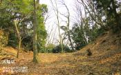 | 月山富田城 2014年3月15日 | 1997年のNHK大河ドラマ「毛利元就」の放映の頃に 登城したので、17年ぶりです。 安来市立歴史資料館で、現地ガイドの方の出迎えを受け ました。前日の雨で、山上への道が相当ぬかるんでいる ので、杖を借りる方が良いとのアドバイスを受けました。 太鼓壇には、尼子再興のために尽力した山中鹿介の銅像が あります。華麗な鎧兜をまとい、三日月に祈る凛々しい 鹿介の銅像は、人々を惹きつけます。 花の壇に続く、山中御殿は城主の居館があったとされる場所 ですが、かっては城郭の中心部分であった事を連想させる 広々とした広場と、周りを囲む石垣が残るのみです。 本丸へは、ここから七曲りの急坂を登らなければなりません。 特に下山の時は、杖を借りていて大正解でした。 標高192mの中世の典型的な山城、山中御殿から、三の丸、 二の丸、本丸へと馬の背にそって郛が築かれていました。 永禄7年(1564)、毛利軍に完全包囲されるも、山中鹿介らの 奮戦で1年半にわたり抵抗を続けますが、永禄9年ついに降伏、 尼子氏80年の栄華は終わりを告げたのです。 |