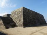| 大分府内城 2017年9月28日 | 91城目 6:40羽田空港発で大分入り。これから、2泊3日で南九州5城を登城します。 移動手段は高速バス、サンキュウパスを使用しました。3日間九州全土高速・路線バス乗り放題10.000円と安価です。早速大分空港から大分府内城まで利用しました。 府内城の遺構は内堀の石垣と、大手門しかなく、内部は文化会館取り壊し工事の真っ最中で、スタンプは文化会館が存在しませんので、大手門柱の隅に野ざらしで置いてありました。全体の感想は高いお金、貴重な時間をかけて行くところでは無いと思いました。 |