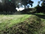 | 佐土原城 2024年7月27日 | 佐土原駅から宮崎交通バス西都バスセンター行きに乗り鶴松館へ。そこでスタンプを押し資料を頂く。鶴松館へは東春田というバス停で降りてください。鶴松館の裏にイノシシを阻止する扉があります。大手道から登って行くと危険立ち入り禁止のロープがあり、南の城も入れません。道も三カ所程迂回して、木の階段を上がるようにしてくださっています。本丸近くの道はぐちょぐちょで滑ります。でも道の手前に「滑ります」と親切に書いてありますから覚悟して歩きました。本丸も天守跡も草ぼうぼうです。天守台もよく見えません。土塁や堀切は見事でした。帰りは中の道へ降りました。こちらは歩きやすい道でした。 |