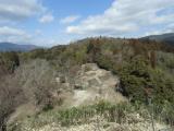 | 宇陀松山城 2018年12月9日 | 近鉄榛原駅から大宇陀行きのバスに乗り換えて終点下車。千軒舎でスタンプget。ここには本丸跡や天守から発掘された鬼瓦等が展示されています。千軒舎の裏口から本丸跡までの道に出られます。道は途中まで舗装されていて スムーズに登城しました。途中空堀をしばらく眺めました。天守跡からの眺めも良かったです。誰もいませんでした。道の駅でブルーベリーソフトクリームと栗を食べて、足湯に浸かりました。 |