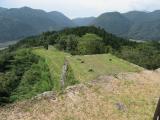 | 岡城 2015年5月4日 | 30城目 国史跡 宮崎の高鍋から移動 まず市立歴史資料館へ 竹田や岡城の概略をインプット 郷土のゆかりの人物として広瀬武夫と滝廉太郎が大きく取り上げられている つぎに岡城跡へ 惣役所跡が駐車場になっており入場料を支払うと巻物になったパンフレットがもらえる なかなか良心的である 城跡に向かって進んでいくと大手門前が階段になっている 大手門をすぎると平坦になり三の丸・二の丸・本丸と続く 北方向には遠く九重連山を望むが出来る 城跡の南北は深い谷になっており堅固な城であることもうなずける |