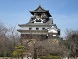 | 犬山城 2017年3月18日 | 72城目 国宝(天守) 早朝北陸自動車道を米原ICで降り,国道21号をひたすら東へ。普段は混んでいるらしいが土曜の朝ということもあり順調に進む。途中,鵜沼の和食チェーン店で朝食をとり木曽川のほとりへ。対岸の崖の上にやや小ぶりな天守が現れる。東方向なので午前中は逆光になり撮影には不向き。 まず,犬山城下町周遊券を購入し城とまちミュージアムで犬山城の概要を知る。その後からくり展示館のからくり人形の操作実演まで少し間があったのでどんでん館まで行ってくる。 つぎに,お城に向かう。登城口に神社が二つありどこから入るのかよくわからなかったが適当に登っていくと本丸門に到着。本丸門をくぐって本丸広場へ進むと三重四階の天守が眼前に現れる。 天守内部は,専門的なことはよく分からないが丸岡城や松本城に似ていると感じた。天守最上階の廻縁に出てみると,360度の展望が広がる。西方向には木曽川越しに金華山や雪をかぶった伊吹山が確認できた。 犬山城には「国宝」という冠詞が付いているのを強く感じた。犬山には城下を含め3時間ほどの滞在で次の目的地小牧へ向かう。 |