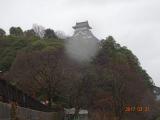 | 岩国城 2016年4月4日 | 63城目・・山城で7年で取り壊され、今は復元の天守閣が錦帯橋との構図を生かして建てられていた。ロープウエーイで登り、復元模擬天守と復元天守台、と残っていた石垣を見る。石垣は古式穴太積み・穴太衆が築いた野面積みで 400年前の石垣で全国的にも 珍しいとか。天守からは眼下に桜と錦帯橋が見えたが、もっと晴れていれば最高だったろう。錦帯橋から見上げて橋と城が一枚の絵になる。 |
