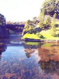楠公レストハウスで押印し、楠木正成の像、桜田門外、二重橋、坂下門、桜田門内?と…ぐるりと回りました。桜田門の内門の横にある建物の瓦に菊のご紋が見えました。桔梗濠に空や建物が写し出されて、すごくきれいでした。