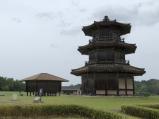 | 鞠智城 2019年5月18日 | 土曜日にもかかわらず、雨だからお客さんが少なく、ラッキーでした。古代山城だから、大野城や鬼ノ城ような険しい山城をイメージしてましたが、高低差が少なくて案内板もあり、雨でしたが、心地良く城巡り出来ました。八角形鼓楼は本当はもう一棟建っていたそうです。 |