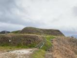 | 根室半島チャシ跡群 2017年10月11日 | 71城目 JR根室駅からバスで納沙布岬。そこから徒歩30分でヲンネモトチャシ。 釧路から鉄道+バス+徒歩で3時間半かかります。 遠いです。 鉄道(花咲線)もバスも本数が少ないので基本レンタカーの方が良いですかねー。 (自分は鉄道やバス移動が好きなので不便でも楽しいです笑) 納沙布岬から歩いて行くとだんだんヲンネモトチャシが見えてくるのですが、 遠目では普通の岬です。 温根元漁港の一番端っこ(チャシ側)から、やっとお供え餅型の地形が確認できます。 (漁業関係者の迷惑にならないように) ただ草が生えているのでハッキリした地形はいまいちわかりづらかったです。 チャシ跡まで行ってみると、濠で分断された二段の土地がわかります。 同じ時間かけて釧路に戻りました。やっぱ遠い笑 スタンプは根室駅前のインフォメーションセンターで。 納沙布岬の有名店「鈴木食堂」は休みでした。冬季休業でしょうか... |