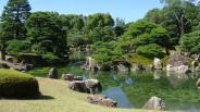 | 二条城 2015年7月26日 | 京都駅近くのホテルに泊まり、朝8時過ぎには到着したものの、9時開門で時間が有ったので堀の周りを一周して戻ると観光バスが沢山止まって開門待ち状態でした。修学旅行以来で、修学旅行の時は二の丸御殿と庭園だけで、本丸跡の石垣までは行かなかったので、開門前に一周した時想像より広く感じた意味が判りました。 |
