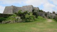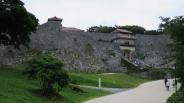 | 中城城 2015年10月4日 | 沖縄2日目で、那覇BTから30番バスで「中城小学校前」で下車し、登り坂を30分程歩いた山の上に有りました。想像以上に規模の大きい石垣で、サンゴの石を整形して積み上げられていてみごとな石垣でした。曲輪も良く出来ていて、写真を撮るポイントが沢山ありました。朝早くから高校生の1クラス分位の団体が来てましたが、希望者のみで来た感じでした。券売所と管理室は簡素で、休憩所もベンチと自販機という、のどかな感じでした。荷物も無料で預かってもらいましたが、預ける人は少ないようで名前の確認がありませんでした。今帰仁城のような場所に有れば、来客数は中城城の方が多くなるように感じました。付近の観光スポットの数の違いでしょうか?。次の首里城へは、「中城小学校前」へ戻り、30番バスで「小那覇」で下車し、道の反対側のバス停から46番バスで「首里駅前」で下車しました。46番バス待ち時間は、隣接の大型ショッピングセンターで休憩しました。 |