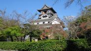 | 犬山城 2015年10月12日 | 前日の夕方に岐阜から犬山への1駅手前の「犬山遊園」で途中下車して、犬山城の見える木曽川岸沿いを散策したりしていました。犬山駅の近くのビジネスホテルに宿泊しました。朝8時過ぎにチェックアウトして、フロントに荷物を預け、城下町を通って犬山城に行きましたが、開門が午前9時でしばらく待ちました。城には待ちなしで入れ、最上階では展望廊下の手すりが低いため慎重に歩き、まだすいていたので2週して景色を楽しみました。やはり、国宝の現存の木造天守で、復元木造とは違う木組み、柱・梁の仕上げも違い、歴史の深みを感じました。 |