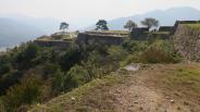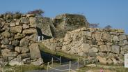 | 竹田城 2015年10月24日 | 篠山口から城崎温泉行特急で和田山へ、普通(観光車輌)に乗換えて竹田へ移動しました。備中松山城と鬼ノ城でタクシーを利用して楽をした反省から、天空バスをパスして、駅の裏から登山道を上りました。整備された登山道も途中から荒れてきて30分程で料金所に着きましたが、雨の日は大変と思いました。人気が有るため団体客も多く、一方通行のシートを敷いた道を順路に従って歩いて山城を散策している気分とはかなり違いました。規模的には高取城や岡城より小さいと思いますが、周りに高い木が無いため、石垣がそびえ立っていて印象も強く感じます。兵庫は岩山ばかりで森林が発達しないためのように思います。出発から駅に戻るまでGPSの計測で約4Km1時間半程で予定よりかなり早く戻り、大阪行特急で姫路に向かいました。 |
