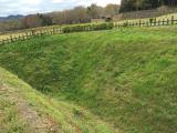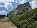 | 山中城 2017年8月23日 | 29城目です。車で登城しました。山中城駐車場に車を停め山中城跡案内所・売店でスタンプを押しました。三ノ丸堀から入り、二ノ丸、本丸、天守台と回りました。その後、西ノ丸・物見台、西櫓、帯曲輪と回りましたが石垣はなくところどころにある畝堀、障子堀は見事です。それから箱井戸、宗閑寺(北条型と豊臣方武将のお墓)を回って一度案内所に戻ってから、反対にあるすり鉢曲輪の方に向かいました。こちらも畝堀が見られます(こちらには豊臣方が攻めて来るので防御を高めるため急ぎ着工したが間に合わなかったと説明書きがありました)全体的に綺麗に整備されており緑がよく映えていました。滞在時間は2.5時間でした。帰りに売店で寒ざらし団子をいただきました。 |