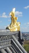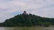 | 犬山城 2015年7月25日 | 梅雨明けの猛暑の中、登城しました。天守から眼下に広がる木曽川は、雨の影響で濁っていました。風景としては少し残念。東の方向には成田山名古屋別院が見えます。 |