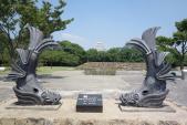 | 明石城 2015年8月1日 | 城跡一帯は明石公園として野球場、競技場、芝生の広場など市民の憩いの場として利用されているようです。スタンプは明石駅から入って右手の建物でサービスセンターの受付の横に置いています。サービスセンターのとなりはローソンになっています。夏休みで子供たちが芝生ではしゃいでいました。 |