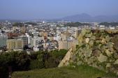 | 延岡城 2018年5月3日 | 続10城目延岡市役所のほぼ脇。城址案内標識に従って進むと新しい4台の駐車場着。大手門、管理事務所、千人殺し石垣を見て天守跡まで10分。 写真ポイントに乏しく千人殺し、大手門、あとは天守跡からの眺め位か?天守跡は記念碑などでコテコテしている。写真は、最後の殿様、旭化成を誘致した内藤政挙像。大手門横の積み石の刻印が明瞭。 |
