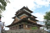 | 弘前城 2019年8月12日 | 青森市田茂木野付近からクルマで弘前市街に移動。北門にほど近い「津軽ねぷた村」に駐車し、そこで昼食の津軽そばをいただく。弘前中央高校の真ん前の中央高校口より公園敷地内に進入。丑寅櫓を経て東口券売所より北の郭、本丸へと進み、仮移転の天守を見学。その後は二の丸に進み、現存する五つの城門と三つの隅櫓を見学。最後は四の丸、護国神社の前を通って北門から城外に出て、ねぷた村駐車場に戻りました。所要約2時間。 天守のみならず、城門、櫓がこれだけ現存しているのは大変素晴らしいことで、弘前に限らず、都道府県庁所在地ではない地方自治体が城下町であることを誇りとし、相応の費用をかけて城を維持保存する姿勢に頭が下がります。 |