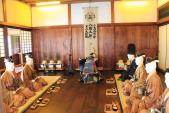 | 武田氏館 2019年11月30日 | 甲府城の後、登城。一見、七五三で賑わう神社ですが、堀で囲われ、かつての姿を偲ばせます。宝物館では風林火山の幟などの貴重なお宝を見学。 |
