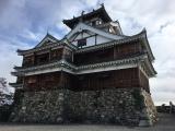 | 今治城 2019年2月21日 | JR今治駅からはやや距離があり、徒歩だと15分くらい見ておきたい。高麗門側から入ると、まさに天守が水の上に浮かんでいるかのような、優麗な姿を堪能できる。 城域自体はコンパクトで、堀をぐるりと回るのでなければ、1時間とかからず見尽してしまうだろう。 混むことも少ないと思われるので、落ち着いて登城できるお城である。 |