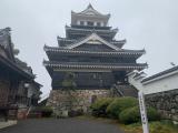 | 中津城 2024年1月19日 | 駅からは10分ほど歩く。最短コースだと複雑な住宅街を抜けるため、スマホを見ながらになるだろう…と予想していたものの、何と旅行者が迷わないように路面の色を変えて誘導してくれていた。町ぐるみで城や文化遺産を盛り上げようという意図が感じられる素晴らしい試みだ。スタンプは天守内部で入場有料だが、基本内部は撮影自由で入場する価値は十分にある。街中に散在している石垣などの遺構を巡るのも楽しいだろう。 |