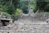 | 安土城 2016年10月8日 | 【19城目 安土城】滋賀県 彦根城から本日2城目。安土城跡に到着。 下で木のつえを借り、石段をのぼる。なるべく小さい石のところを選びながら登る! ぽちゃこはひざの痛みに負けそうになるが、なんとか到着!丸い石が点々と並んでいる。ココに信長の城があったのかと思うと登った甲斐がある。眺めも最高!汗が気持ちいい。信長も眺めた景色と思うと感動する。 このあと寄った「安土城天主信長の館」で、今日登った安土城までの石段の道のりがバーチャルで見れて、かつての姿を想像することができて感動した。 →観音寺城(滋賀県)へ |