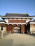 | 二条城 2009年1月10日 | 太秦へ行く用事があったので、その途中で入城。 駅から歩いていったんですがすぐに二条城発見! と喜んだのもつかの間…歩けども歩けども堀が終わらない。 雪がちらつく中でしたが付いた頃には軽く体が温まってました。 門が凄く凝っていて、犬が後ろ足で耳を掻いてたりと 中々面白かったです。 |