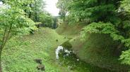 | 長篠城 2018年4月18日 | 28城目 JR豊川駅から飯田線で長篠城駅まで40分です、駅から長篠城址史跡保存館までは歩いて10分、無料駐車場もあります(火曜日は休みです)スタンプは保存館で押せます、空堀がありますが、豊川の河原を見たいので踏切を渡り、何とか降りられる崖道を降り宇連川との合流点まで下りられました、最高の景色でした。 |