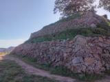 | 高取城 2024年4月29日 | GW前半の晴れ間を狙って、ずっと行きたかった高取城へ。今回は時間と体力に自信がなかったので壺阪山駅からタクシーで山頂付近まで行きました。タクシー代は2660円。駐車場から少し歩くとすぐに石垣がお出迎え、本丸付近まではゆっくり歩いても30分もかからないと思います。この日は快晴で青空を背景にした石垣は写真写り最高。これまで行った山城跡の石垣の中では一番かと。綺麗で整備された石垣もいいのですが、やはり当時のままの荒々しい石垣は最高です。特に城跡にそびえたつ巨木の数々は圧巻です。帰路の途中で夢創館でスタンプ、御城印、城カードを購入。近くの街の駅でお昼を頂きました。 |
