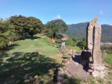 | 若桜鬼ケ城 2023年8月26日 | 姫路から国道29号線で若桜鬼ヶ城へ。若桜町観光案内所へ行く前に林道を通りお城近くまで車で行くことに。駐車場からもう少し進み、馬場跡に駐車。案内板を頼りに進み、すぐ二の丸跡へ到着。本丸跡で行く前に少し下り、先に六角石垣を見に行くことに。所々に石垣が残っていて見ごたえあり。城跡全体にいえるのですが、通路の柵が所々倒れていて気を付けて歩かないと危ないかも。本丸跡からの景色は絶景で見る価値あり。観光案内所でスタンプ押印、2種類の御城印を購入しました。 |