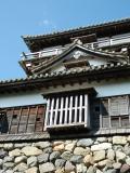 | 松山城 2009年11月2日 | 松山の街は「坂の上の雲」一色。秋山兄弟生誕地前の有料駐車場に車を駐車。生誕地を見学してから登城開始。揚木戸門跡、戸無門、筒井門、太鼓門と多くの遺構を抜けて本丸そして本壇へ。天守入口でスタンプポン(良好。シャチハタも黒色)。天守、小天守、櫓と連立式天守の内部をぐるりと見学。おもしろい展示物のひとつに、当時の大工の落書き(似顔絵?)があります。そのあと大手門から黒門口登城道を下って二之丸史跡庭園を散策。見るべき建造物が多く時間が足りませんでした。 下城後、市内の史跡、ミュージアムを見学し、次の湯築城へ向かう前に道後温泉で一休み。 |