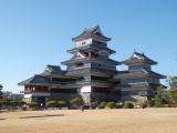 | 松本城 2012年11月25日 | 休日開放の市役所駐車場に車をとめて登城開始。 太鼓門から入城。枡形内には玄蕃石が鎮座。太鼓門一の門を通って二の丸へ進む。石垣補修のため二の丸御殿跡は立入禁止。 二の丸裏御門橋を通って北側の内堀沿いに進み、二の丸東側へ。東側から見る黒い天守は、雪をかぶったアルプス連山をバックにしてとても絵になります。 開門直後に黒門から本丸へ入り天守へ。何度登ってもワクワクする天守。大天守1階の武者走り、3階の隠し部屋、月見櫓の赤い高欄などなど見所盛りだくさんです。 防寒対策に失敗し、靴を脱いで天守内部を見学していると冷たい板敷きに足裏が悲鳴。冬は厚手の靴下が必需品です。(昔はスリッパを借りて見学したような・・・。) 本丸を回って管理事務所へ。入口に備え付けてあるスタンプをポン(良好)。 昼食のそばを済ませ、荒砥城(大河ドラマのロケで有名)と林城(信濃守護小笠原氏の居城)を落として帰国。 |