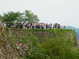 | 竹田城 2014年5月4日 | 早朝、車で出陣。立雲峡へ。お馴染み雲海に浮かぶ城跡は見られませんが、山上に連なる石垣を望むと感動します。 山城の郷の駐車場に車を停め、歩いて城跡へ向かう。40分ほどで料金所へ到着。数年前に登城した時にはなかった観覧料を納め、スタンプポン(良好)。観覧料徴収も貴重な歴史遺産を保護するためと納得。 城内は一方通行。大手虎口跡から入って北千畳、三の丸、二の丸を通って本丸下へ。本丸、天守台へは立ち入り禁止。南二の丸を通って南千畳へ出る。ものすごい人ごみでゆっくり見学できなかったのは残念だけど、いろんな石垣の美しさに触れ興奮。 但馬統一のため出石へ侵攻。出石そばで腹ごしらえして、出石城と有子山城を攻める。有子山城は藤堂高虎が初めて築いた石垣の城とか。本丸まで4、50分ほどの急登で、苦しい城攻めでした。 いよいよ100名城制覇まで残り1つ! いざ、京の都へ上洛!! |