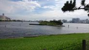 | 品川台場 2019年7月19日 | 遠くから見るとわからないが台場の中心には、くぼみがあり弾薬庫などの施設跡が存在する。 すぐ近くにはレインボーブリッジがあり近代と現代が共存する不思議な空間を醸し出している。 |